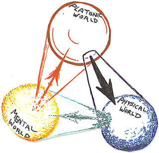 I think that Fig. 34.1 best expresses my position on this question, where each of three worlds, Platonic-mathematical, physical and mental-has it’s own kind of reality, and where each is (deeply and mysteriously) found in one that precedes it ( the worlds take cyclicly). I like to think that, in a sense the Platonic world may be the most primitive of the three, since mathematics is a kind of necessity, virtually conjuring its very existence through logic alone. Be that as it may, there is a further mystery, or paradox, of the cyclic aspect of these worlds , where each seems to be able to encompass the succeeding one in its entirety, while itself seeming to depend only upon a small part of its predecessor.”(Page 1028-The Road to Reality- Roger Penrose- Borzoi Book, Alfred A. Knoff- 2004)