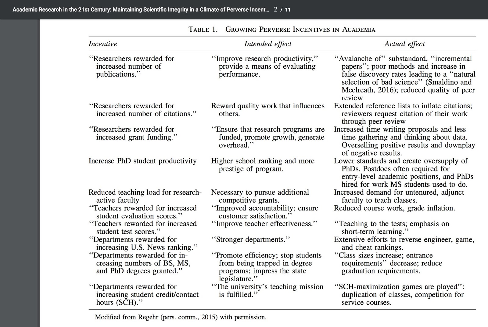 | Perverse incentives in academia. Source: Edwards and Roy (2017). Via. |