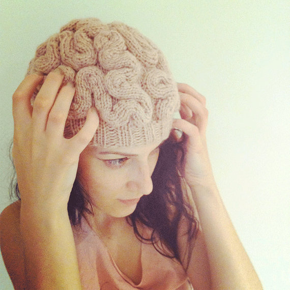 | Knitted brain cap. Source: Etsy. |